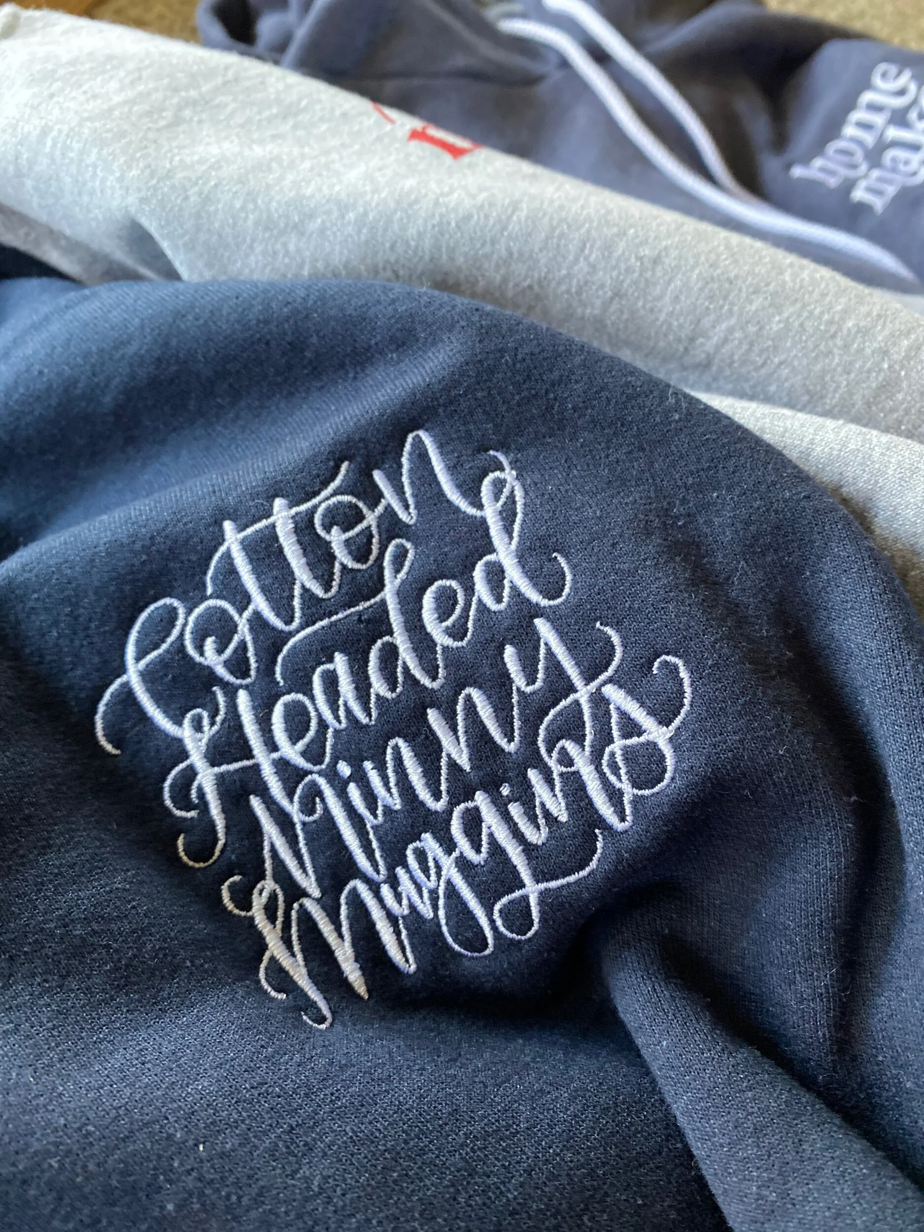 A repurposed quilt star sewn on to a stonewashed green crewneck sweatshirt.